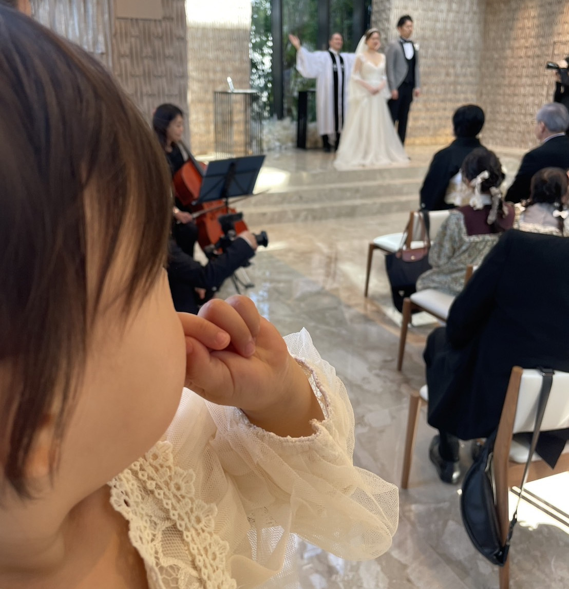 初めて人に預けるのは不安でしたが大正解でした。私はゆっくり御飯ができて親族の晴れ姿を存分に楽しめました。息子はいつもの生活リズムだったので帰宅後グズグズすることなくスムーズでした。